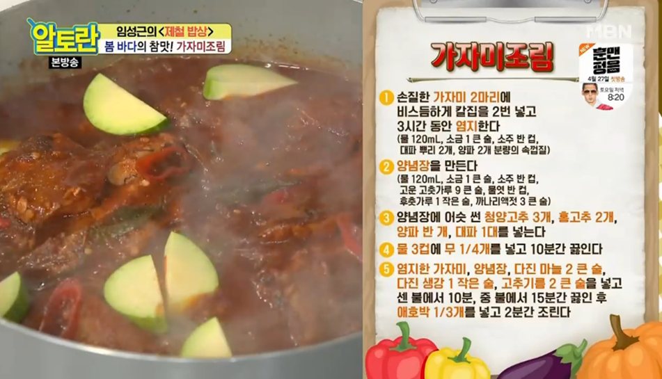 알토란 226회 임성근의 제철밥상 가자미조림 만드는법 포스팅입니다.