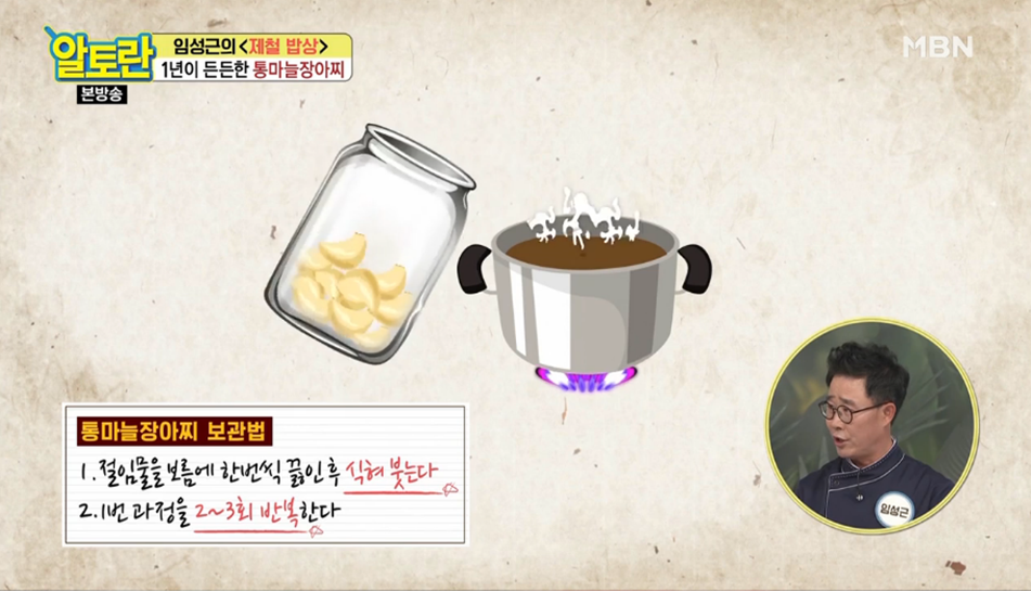 MBN 알토란 230회에서 공개된 임성근의 마늘장아찌 담그는 방법 요약 포스팅입니다.