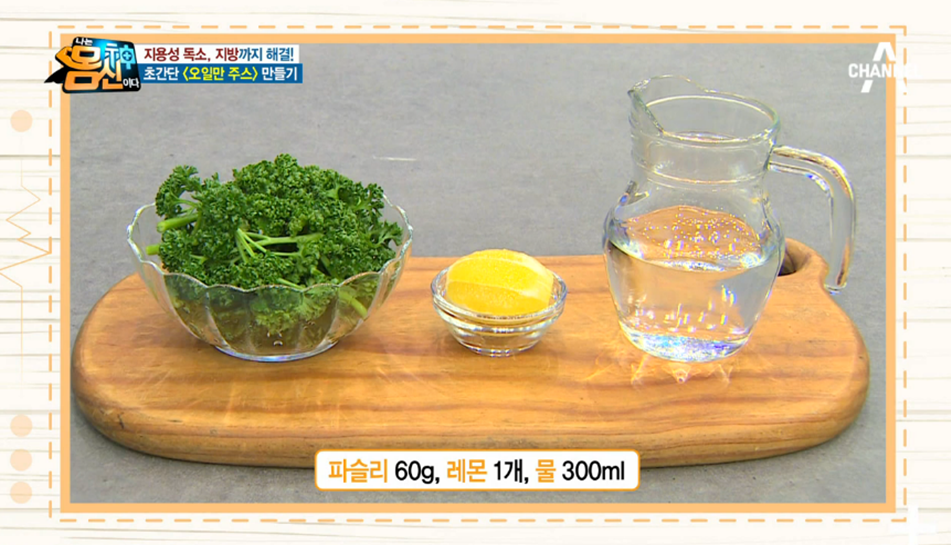 채널A 나는 몸신이다 227회에서 소개된 해독 다이어트 오일만 주스에 대한 내용입니다.