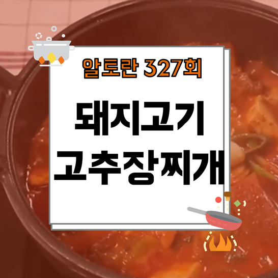 알토란 327회에서 공개된 돼지고기 고추장찌개 만드는법 요약 포스팅입니다.