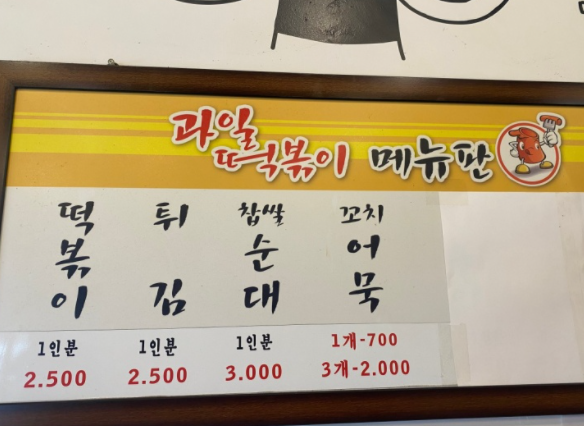 ▶ 떡볶이 1인분 2,500원