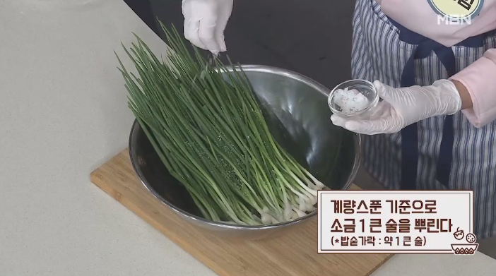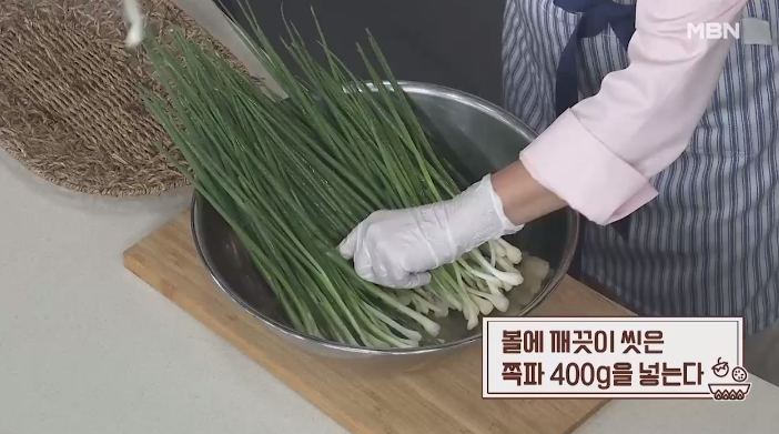 (5) 볼에 깨끗이 씻은 쪽파 400g 넣는다.
