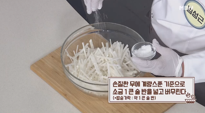 ※무를 소금에 먼저 버무려야 신선하면서도 아삭한 식감이 유지되요! ※