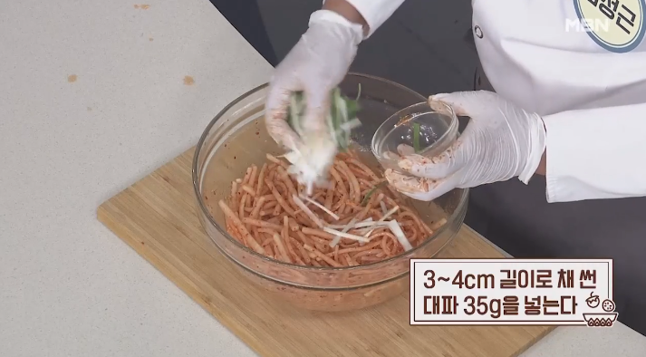 (7) 3-4cm 길이로 채 썬 대파 35g 넣는다.