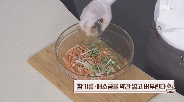 ※무를 소금에 먼저 버무려야 신선하면서도 아삭한 식감이 유지되요! ※