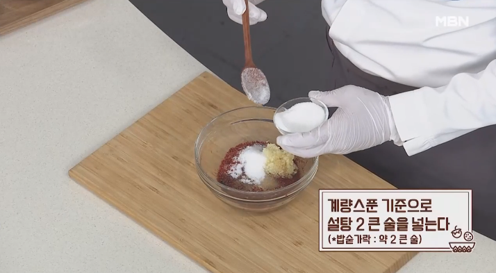 (6) 설탕 2큰술, 맛술 10큰술, 물엿 4큰술 넣고 잘 섞는다.