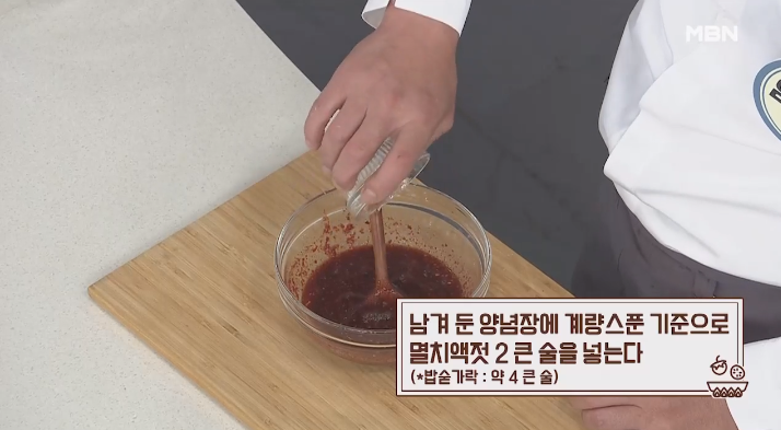 (12) 남겨 둔 양념장에 멸치액젓 4큰술, 멸치육수 1컵 반을 넣는다.