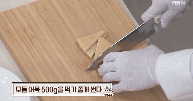(1) 모듬 어묵 500g을 먹기 좋게 썬다.