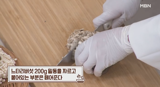 (3) 느타리버섯 200g 밑동을 자르고 붙어있는 부분을 떼어준다.