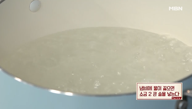 (3) 냄비에 물이 끓으면 소금 2큰술 넣는다.