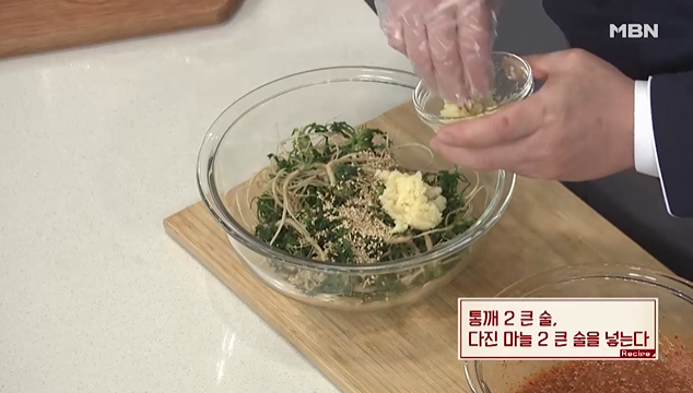 (8) 통깨 2큰술, 다진마늘 2큰술 넣는다.