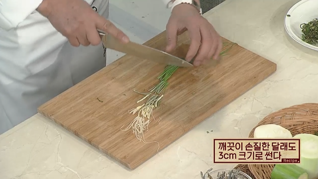 (2) 깨끗이 손질한 달래도 3cm 길이로 썬다.