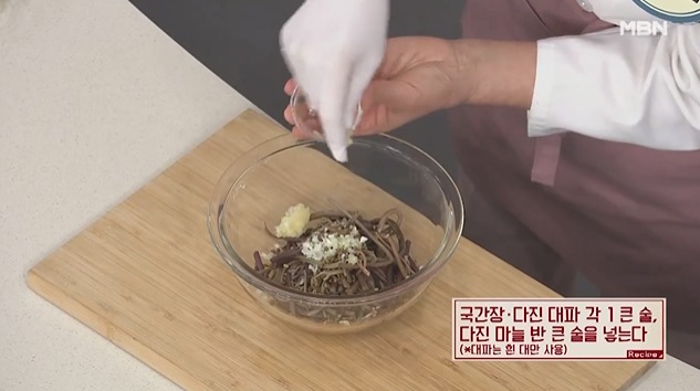 (4) 국간장, 다진대파 각1큰술, 다진마늘 반큰술 넣는다.