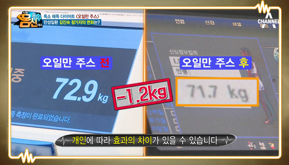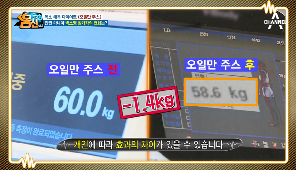 채널A 나는 몸신이다 227회에서 소개된 해독 다이어트 오일만 주스에 대한 내용입니다.