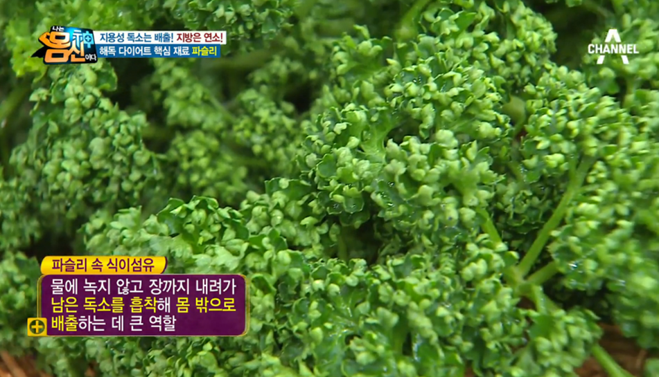 파슬리 속에 미리스티신은 글로타치온 효소를 활성화하여 독소 해독을 도와 지방 연소를 높입니다. 또한 식유섬유가 풍부한 파슬리는 독성 물질을 흡착해서 몸 밖으로 빠르게 배출해줍니다. 몸이 피곤하고 찌뿌둥함을 느끼시는 분들에게는 제격인 파슬리 입니다.