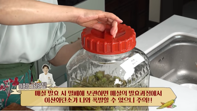 (8) 매실 발효 시 밀폐해 보관하면 매실의 발효과정에서 이산화탄소가 나와 폭발할 수 있으니 주의하세요!!