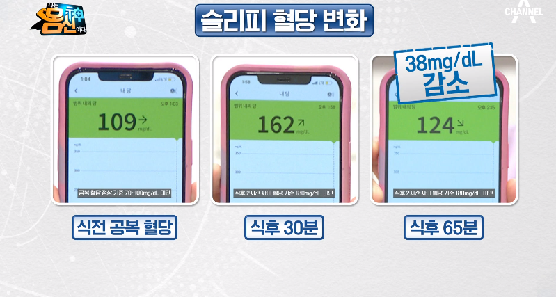 먼저, 몸신 패널들이 공복 혈당을 체크한 후 식사를 하고나서 운동을 하는 방식으로 진행합니다.