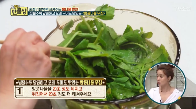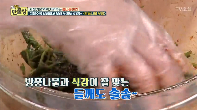 살림9단의 만물상에서 공개된 방풍나물 요리법 요약 포스팅입니다.