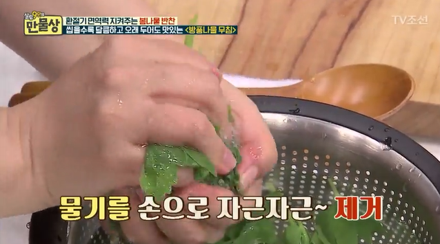 ※ 나물을 데칠 때 식용유를 넣으면 기름 코팅이 되면서 물이 생기는 것을 방지해요※