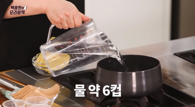 (1) 냄비에 물을 넣고 강 불에 올려서 끓여준다.