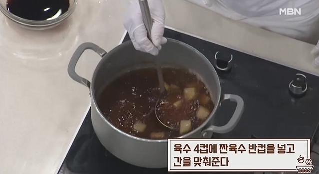 (19) 육수 4컵에 짠육수 반컵을 넣고 간을 맞춰준다.