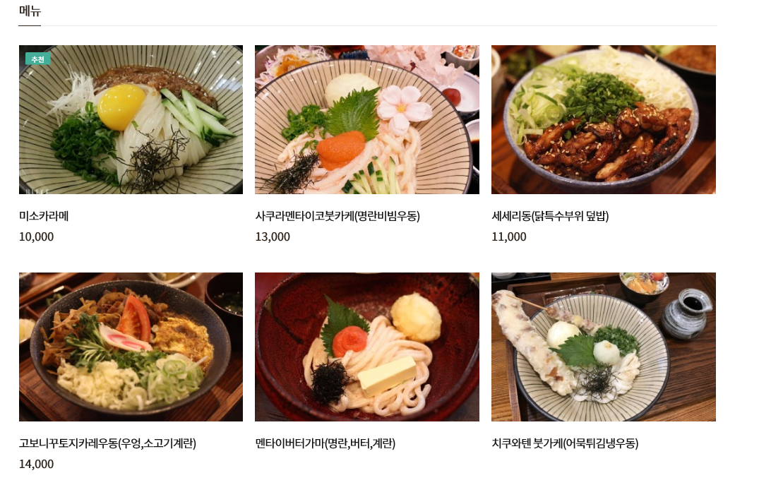 - 고보니꾸토지카레우동 (우엉, 소고기계란) 14,000원