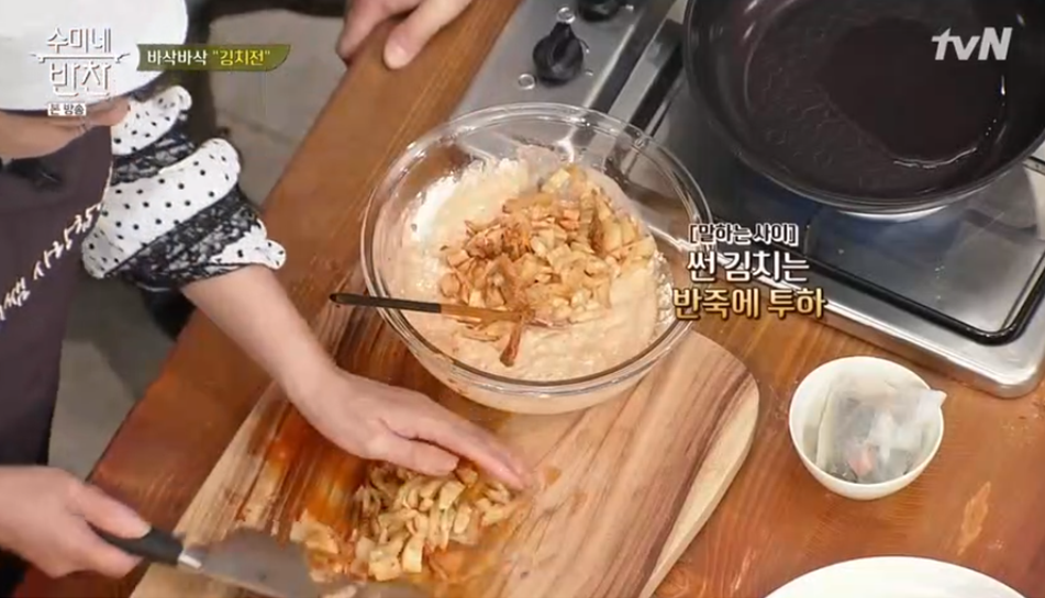 tvn 수미네반찬 45회에서 공개된 김수미 선생님의 김치전 맛있게 하는법 포스팅이에요.