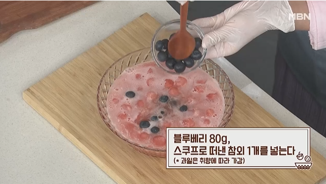 (6) 블루베리 80g, 스쿠프로 떠낸 참외 1개를 넣는다.