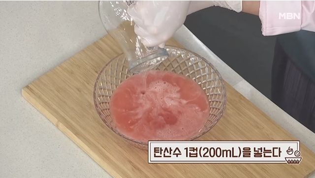 그래서 요즘은 탄산수를 활용해서 수박화채를 만드는데요.