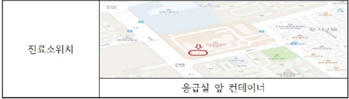 - 운영시간 : 24시간 운영 (유증상자 중 증증환자 전담, 사전 전화 문의 필수)