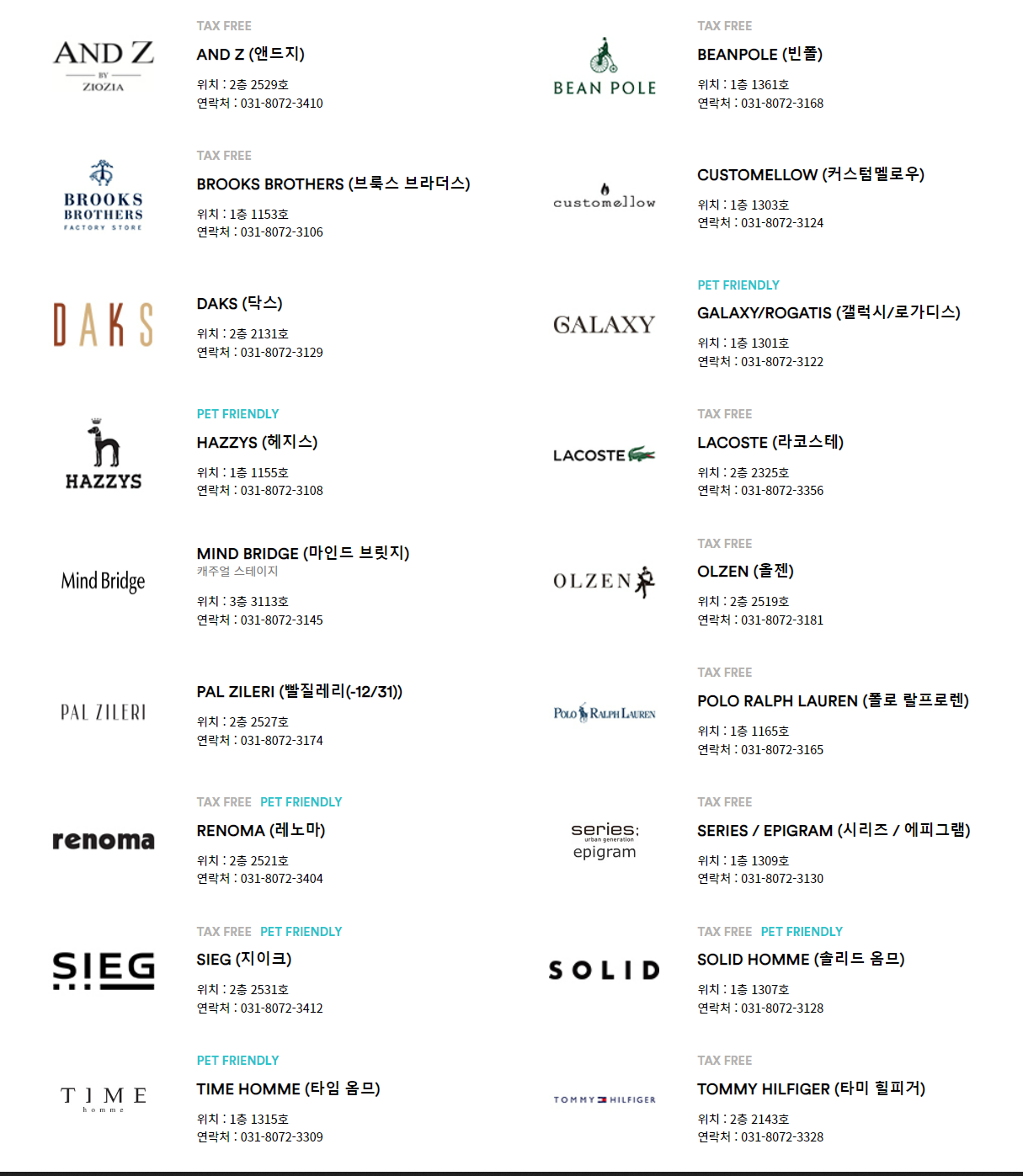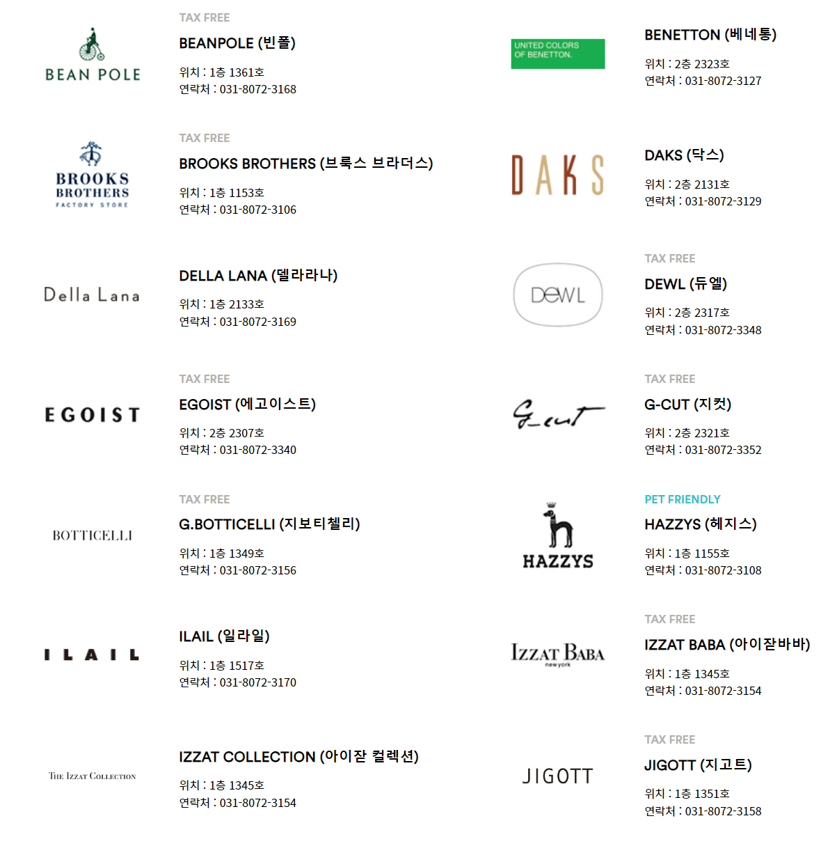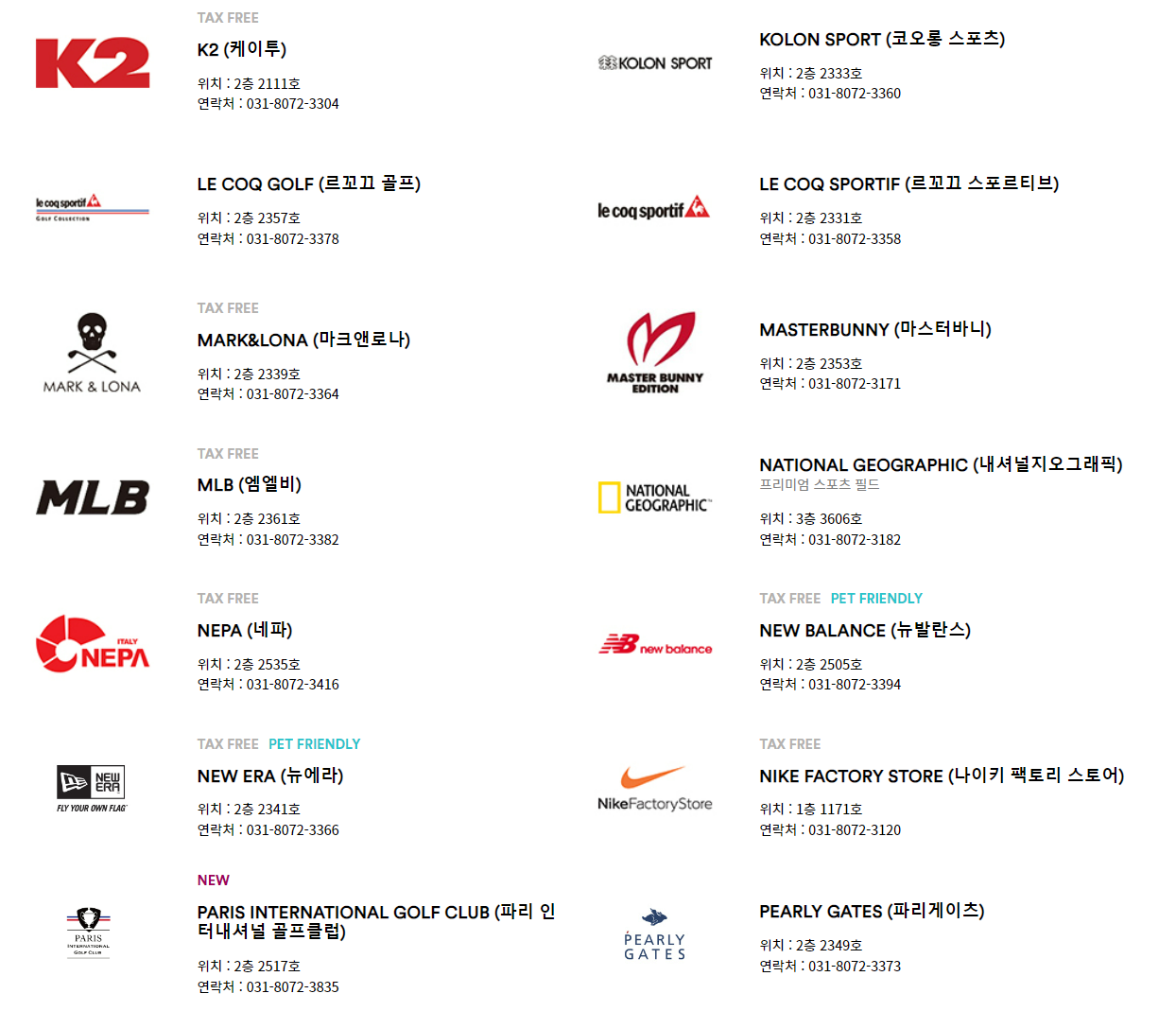나이키, 폴로 랄프로렌, 프라다 외에도 많은 분들이 사랑하는 브랜드들이 입점되어 있는