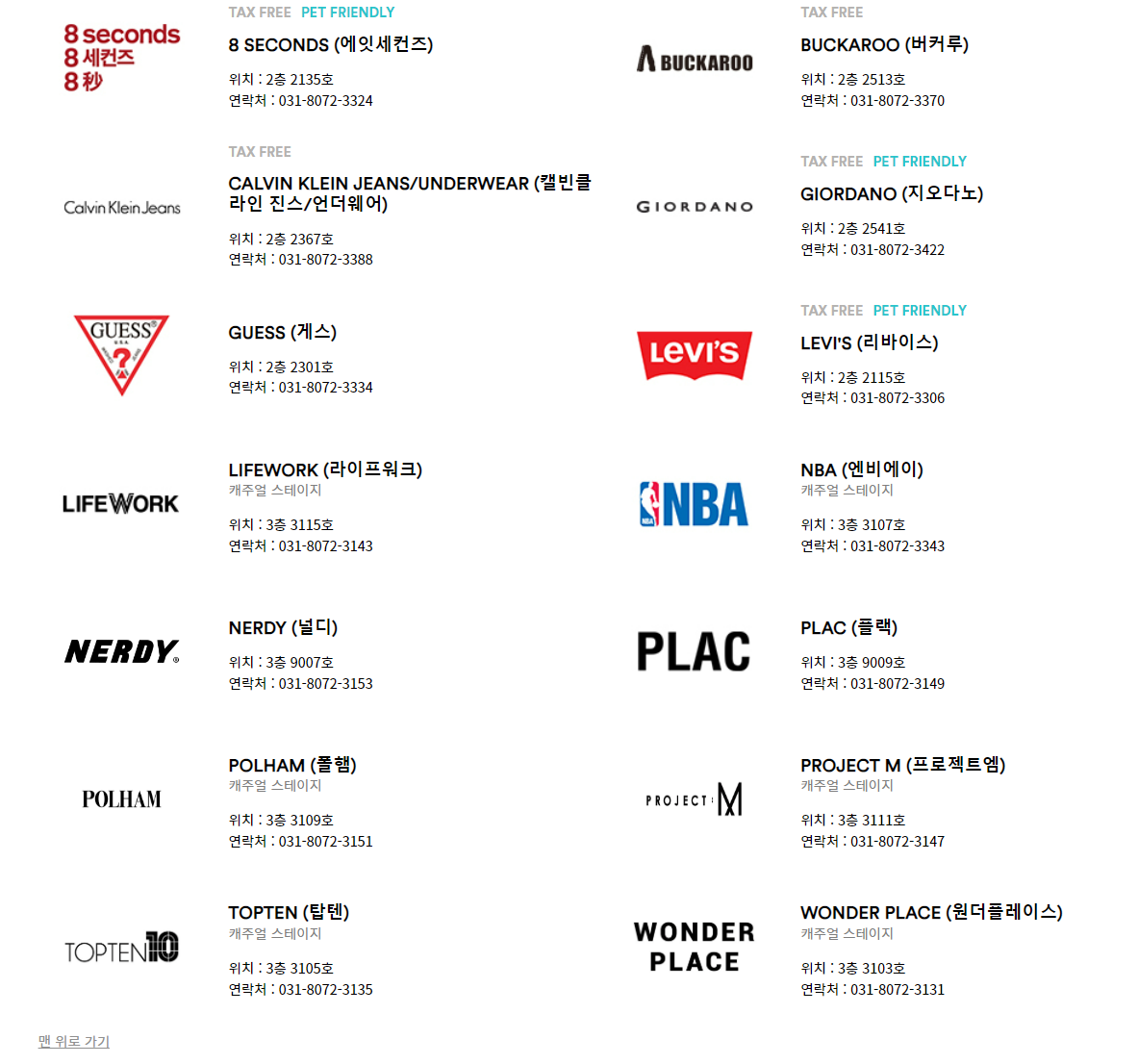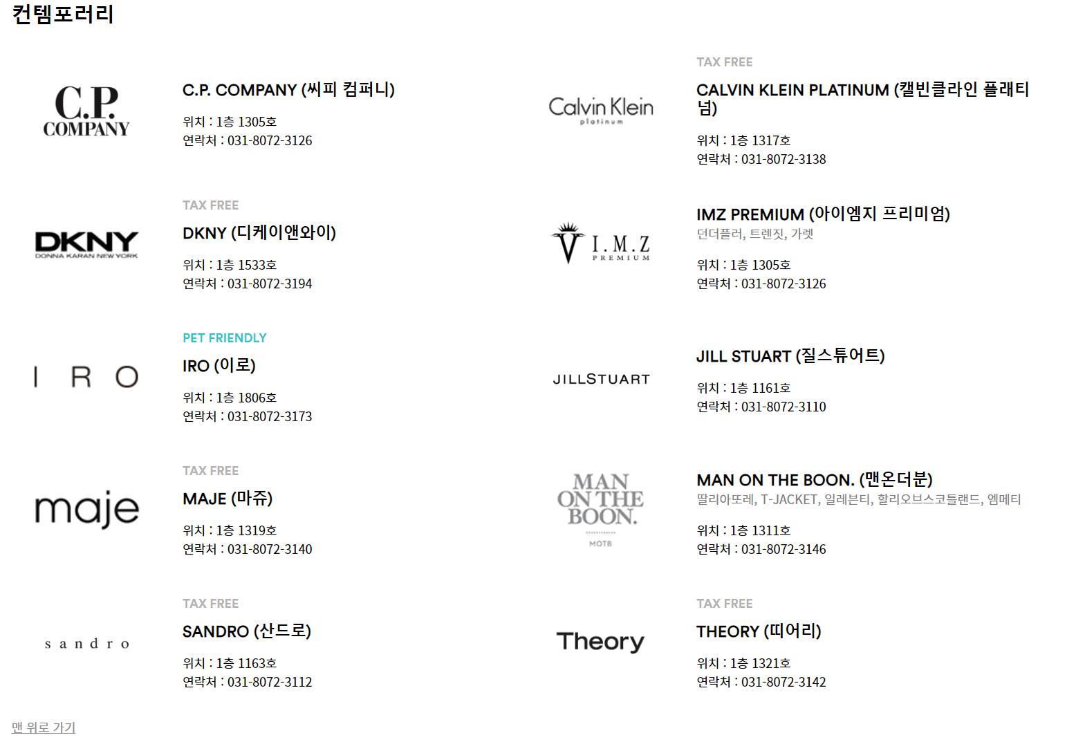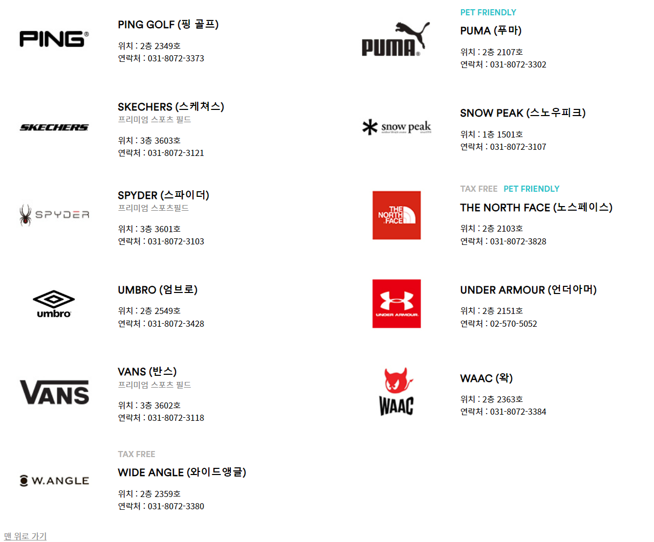찾으시는 브랜드가 있다면 ctrl+f 키를 눌러서 검색해보시기 바랄게요.