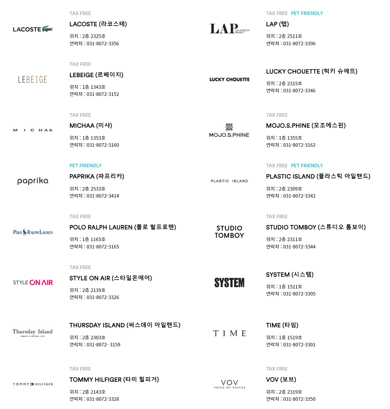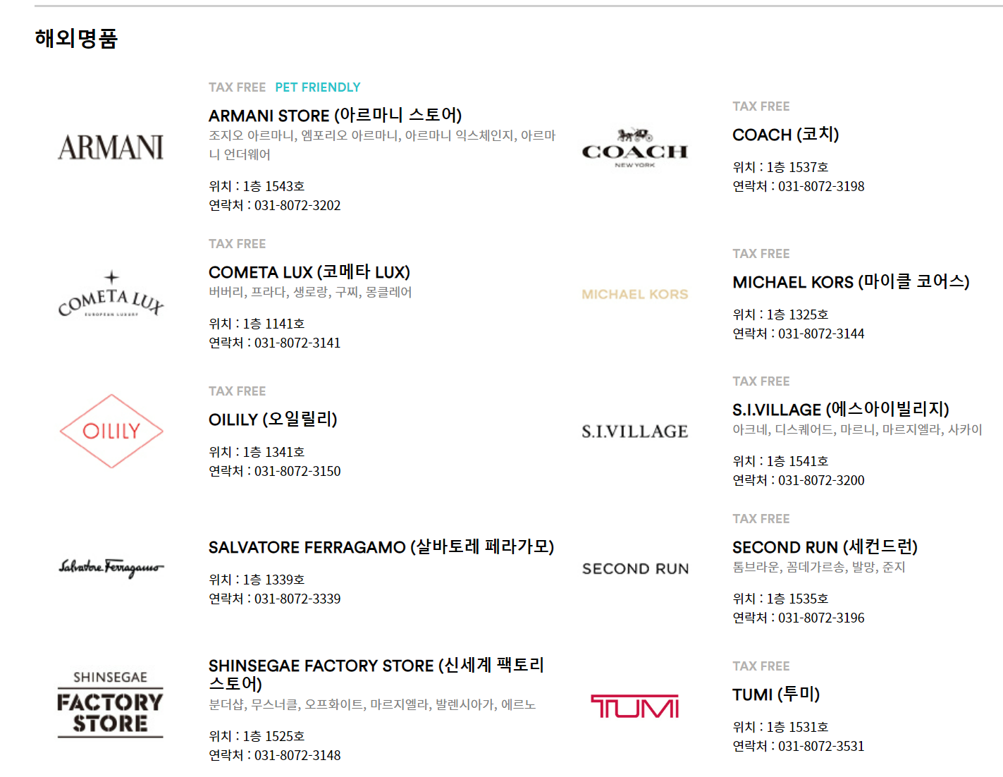 나이키, 폴로 랄프로렌, 프라다 외에도 많은 분들이 사랑하는 브랜드들이 입점되어 있는