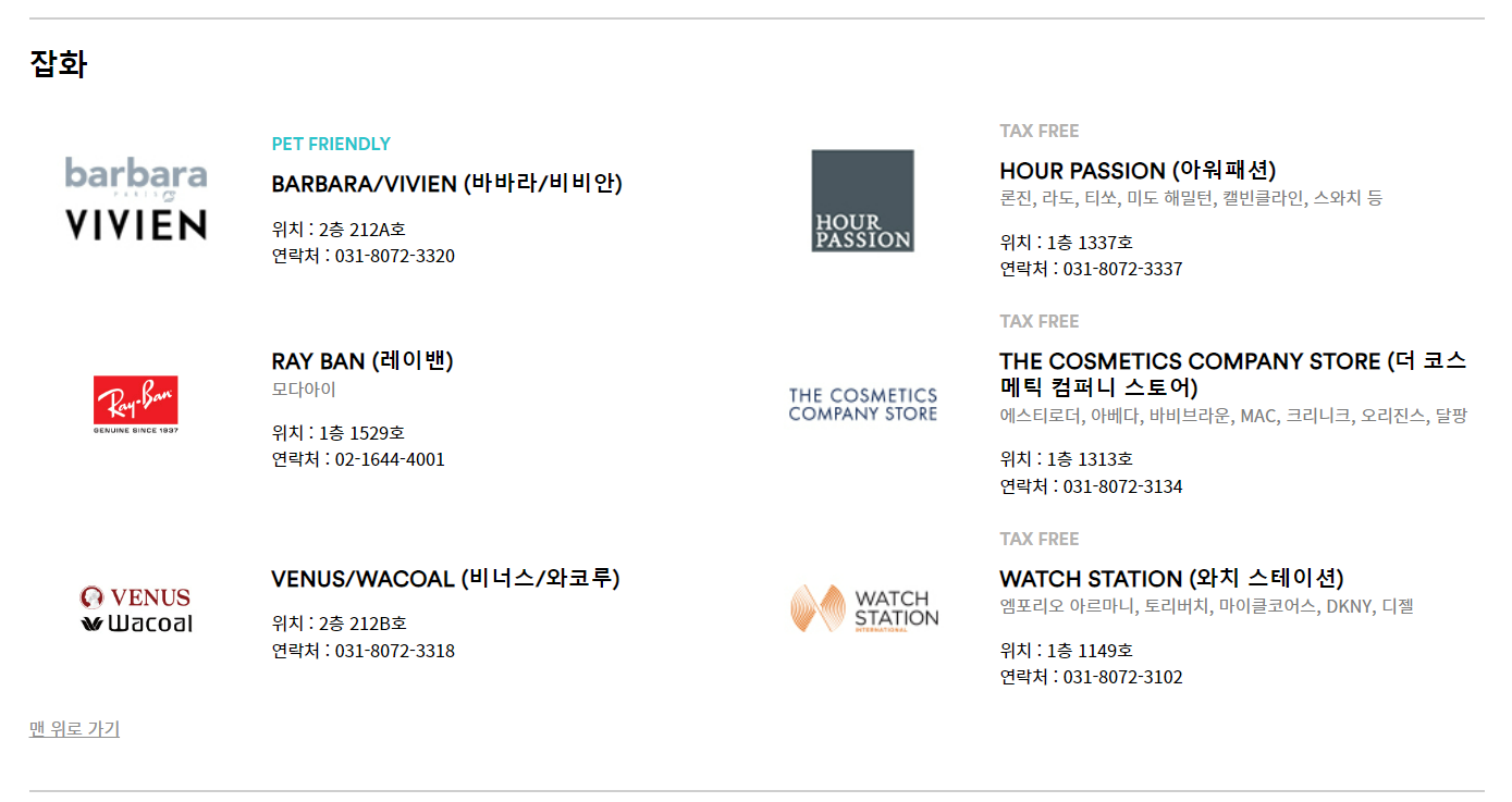 - 생활정보/아울렛, 쇼핑몰 정보