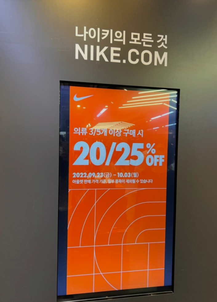 시흥 프리미엄 아울렛 나이키 매장에서는 항시 세일을하고, 한시적으로 추가 할인을 해주는 행사들을 진행합니다.