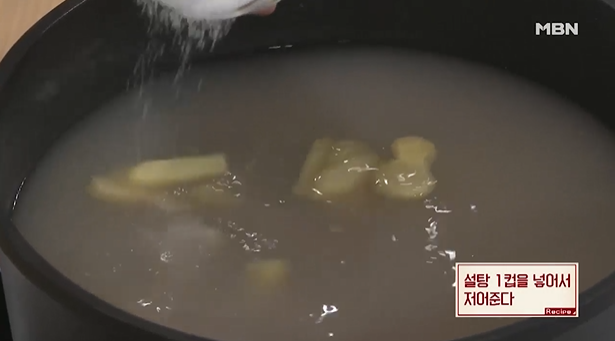 (8) 엿기름물에 설탕 2큰술을 넣고 섞는다.