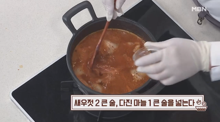 (5) 새우젓 2큰술, 다진마늘 1큰술 넣는다.