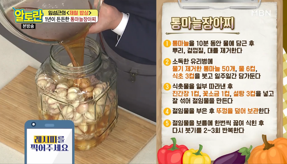 MBN 알토란 230회에서 공개된 임성근의 마늘장아찌 담그는 방법 요약 포스팅입니다.