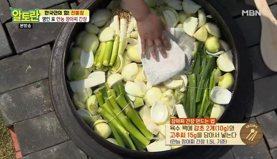 안녕하세요. 사과상자입니다. 주부님들 매일 반찬 만들기도 힘들고 고민이 많으시죠? 이렇게 고민  끝에 장아찌 요리를 선택하게 되는데요. 장아찌는 한번 만들어 놓으면 냉장보관하면서 오랫동안 먹을 수 있어서 좋잖아요? 남편과 아이들도 냉장고에서 쉽게 꺼내서 먹을 수 있고, 밥이랑 장아찌랑 먹으면 간단하게 한끼를 떼울 수 있죠.^^ 그런데 장아찌 맛이 생각보다 잘 나지 않습니다.ㅠㅠ MBN 알토란에 서분례 명인이 출연하였는데요. 서분례 명인의 장아찌 비법은 다름아닌 간장이라고 합니다. 일반 간장과 달리 장아찌에 최적화된 간장을 만들어 소개해 주셨는데요. 사시사철 어떤 장아찌이든 명인의 만능 장아찌 간장만 있으면 맛깔스러운 장아찌를 만들 수 있습니다! 그럼 서분례 명인의 오랜 노하우가 담긴 깊은 감칠맛의 만능 장아찌 간장 만드는법, 자세히 살펴볼까요??