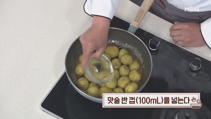 (5) 맛술 반 컵 (100mL)을 넣는다.