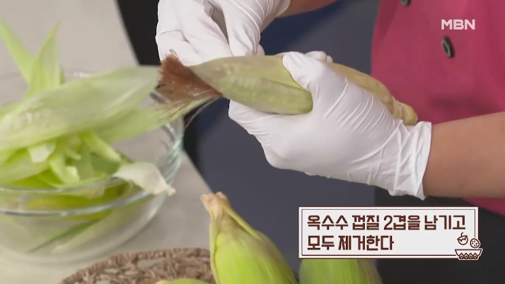 (2) 옥수수 껍질 2겹을 남기고 모두 제거한다.