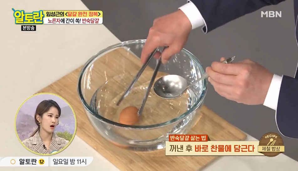 최근에 편의점에서 삶은 계란 반숙이 인기가 많습니다. 보통 2알포장 되어있는게 2,000원 정도하는데요. 계란이 쌀때는 2,000원이면 한판을 사는데, 너무 비싸게 파는 것 같습니다. 식사대용, 도시락 혹은 간식으로 계란 반숙으로 삶아드시는 분이 많아졌습니다. 그런데 내가 원하는 맛과 비주얼이 나오지않는건 저뿐만이 아니겠죠..?^^ 알토란에서 임짱 임성근 조리기능장이 계란 반숙 삶는법을 공개해서 화제가 되었는데요. 한번 자세히 볼까요?