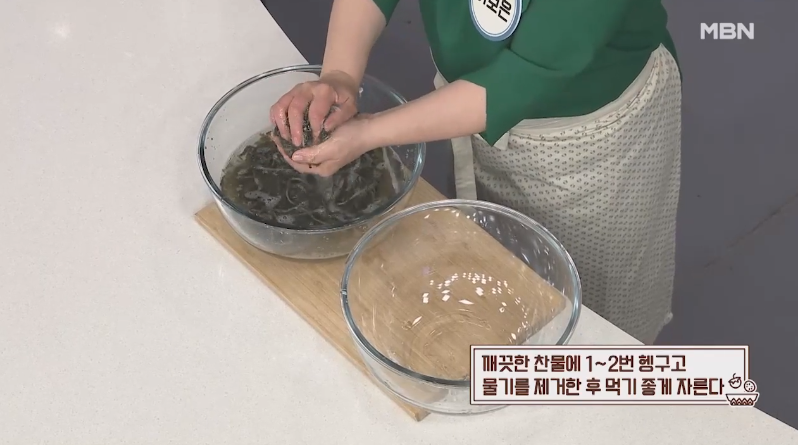 (5) 깨끗한 찬물에 1~2번 헹구고, 물기를 제거한 후 먹기 좋게 자른다.