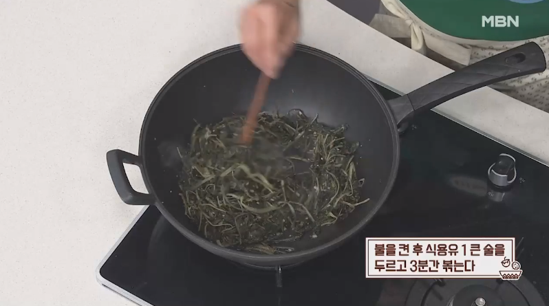 (8) 불을 켜고 식용유 1큰술을 두르고 3분간 볶는다.