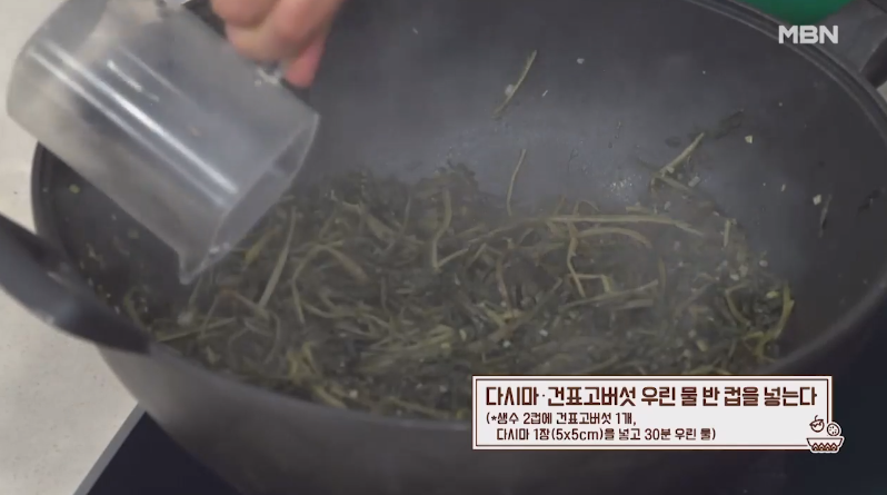 (9) 다시마, 건표고버섯 우린 물 반 컵 넣는다.