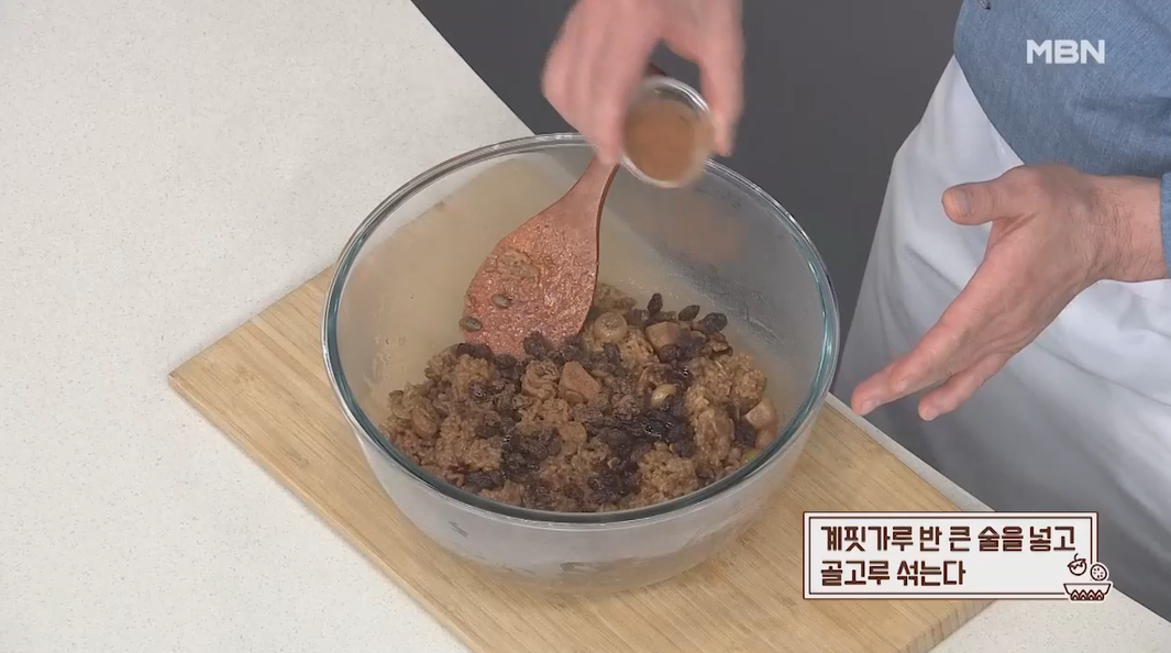 (12) 계핏가루 반큰술 넣고 골고루 섞는다.