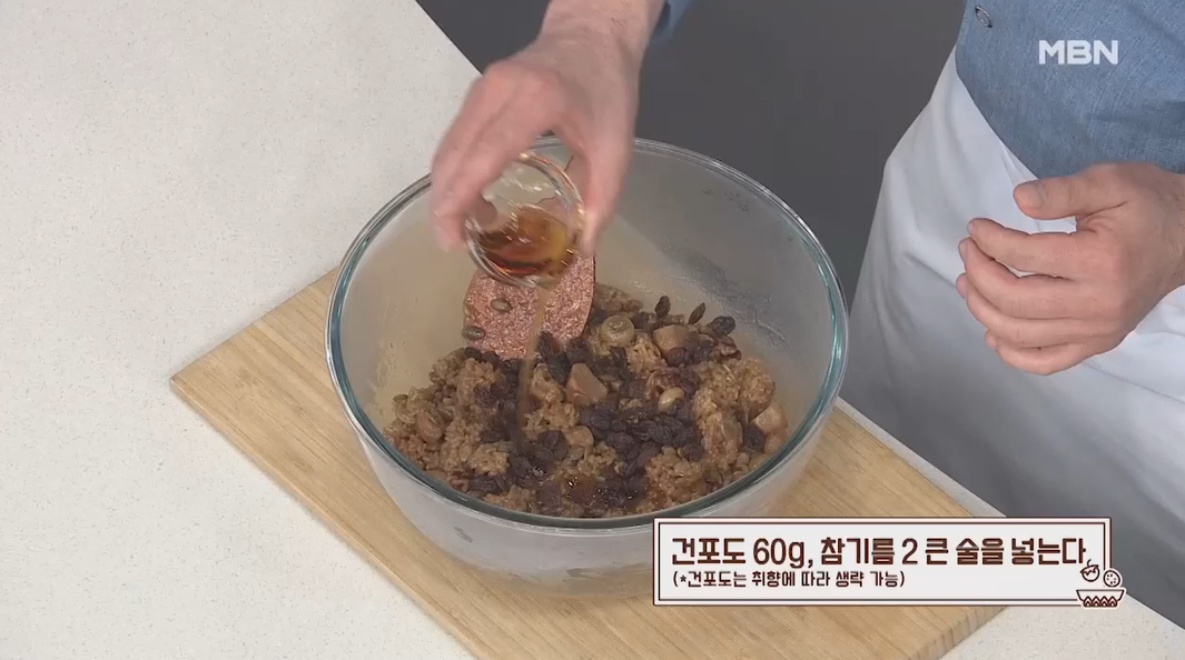 (11) 건포도 60g, 참기름 2큰술 넣는다.