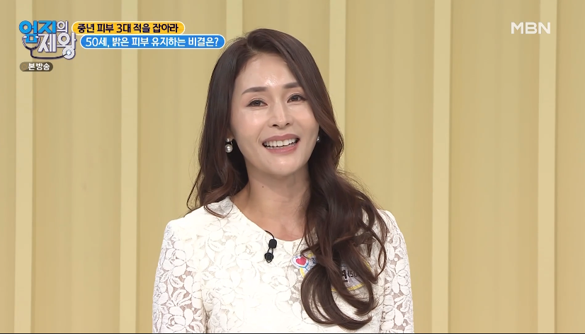 엄지의제왕 454회는 '중년 피부 3대 적을 잡아라'라는 주제로 방영되었는데요. 이 날 출연한 50세 박태연씨는 나이에 비해 엄청난 동안 외모를 선보였습니다. 아래 사진을 보시면 50세 나이임에도 불구하고 정말 엄청난 동안 미모를 보유하고 계시는 것을 확인할 수 있습니다.