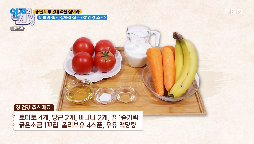 장건강 쥬스에는 당연히 장에 좋은 식품들이 많이 들어가겠죠? 그렇다면 박태연씨의 동안 비법 '장건강 주스'의 재료가 어떤것들이 있는지 알아볼게요.