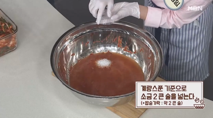 (13) 다진마늘 6큰술, 설탕 2큰술, 다진생강 1큰술 넣는다.
